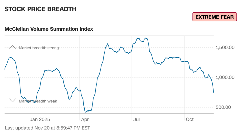 上漲量不足、下跌量偏多=廣度疲弱、恐懼增加。