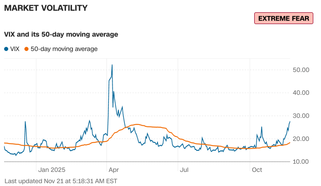 VIX升高=恐慌情緒上升;VIX降低=市場信心改善。