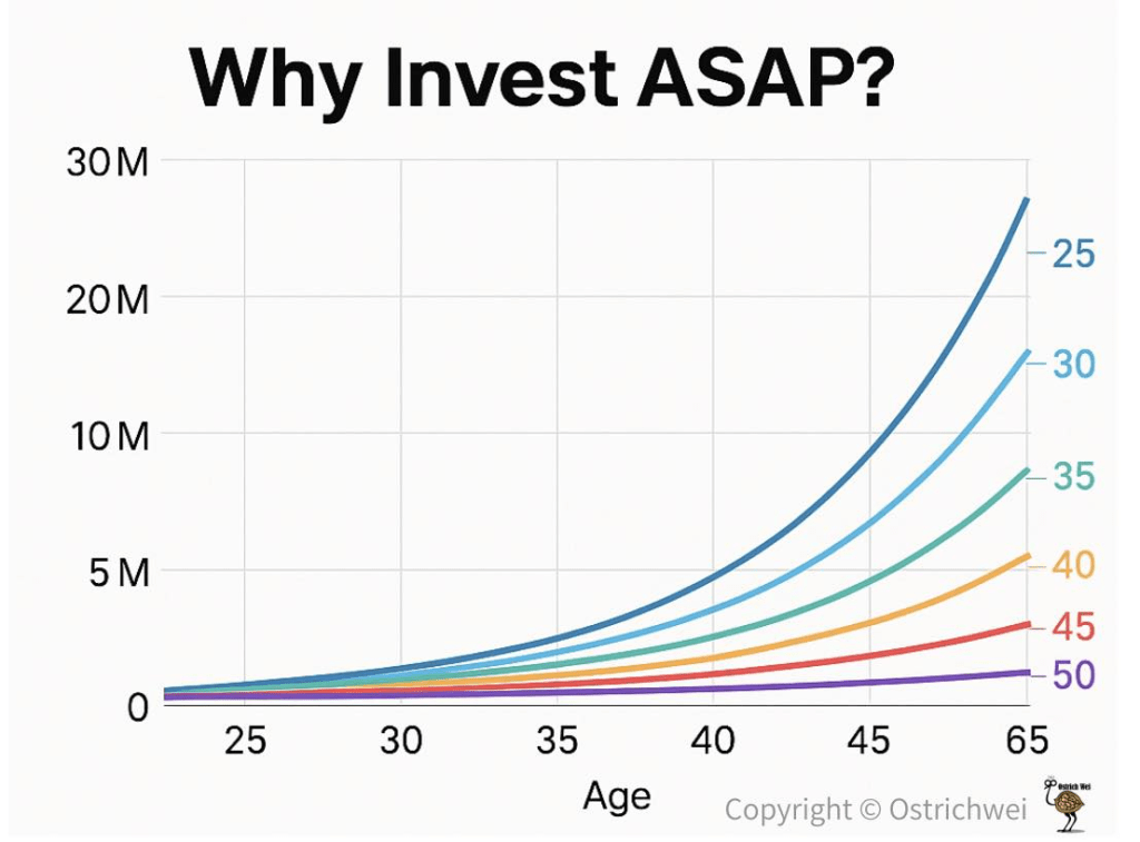 - 早開始的重要性:時間是複利的最大盟友,愈早開始,退休資產增長潛力愈大。