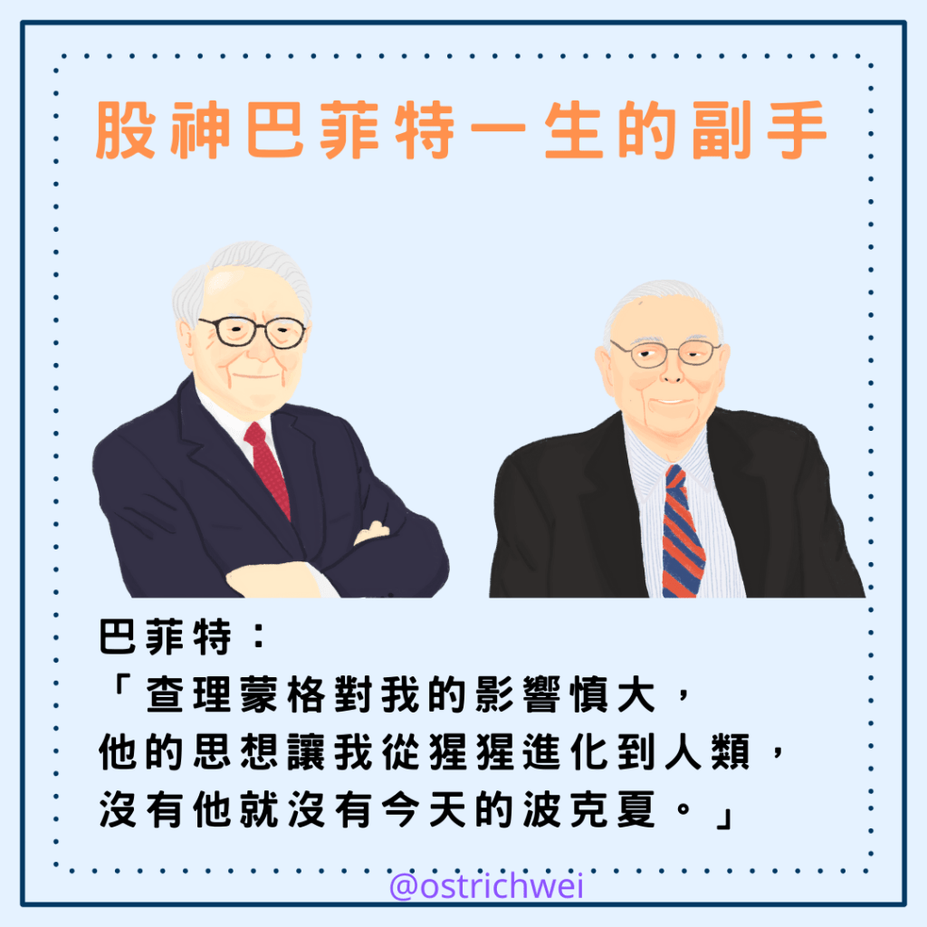 沃倫·巴菲特曾多次提及,若沒有認識查理·蒙格,便沒有今日的波克夏,而他自己也不會從「黑猩猩進化成人類」。