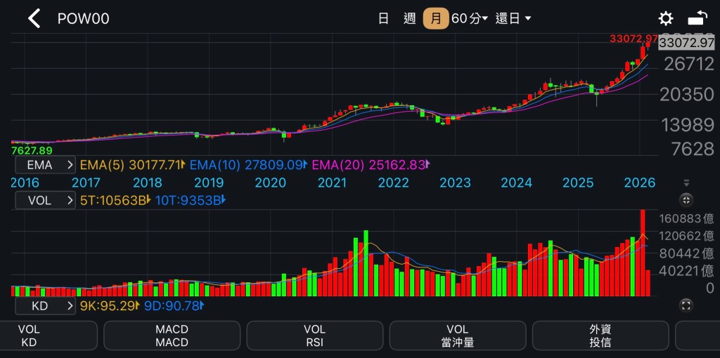 從2016年台股8,000點,一路抱到2026年的33,000點。
